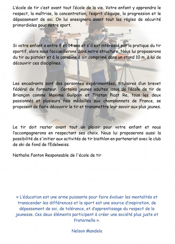 Présentation section école de tir Sportif