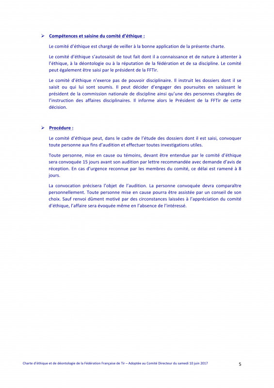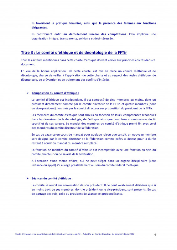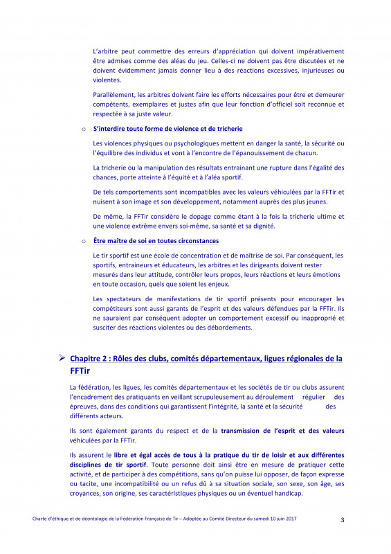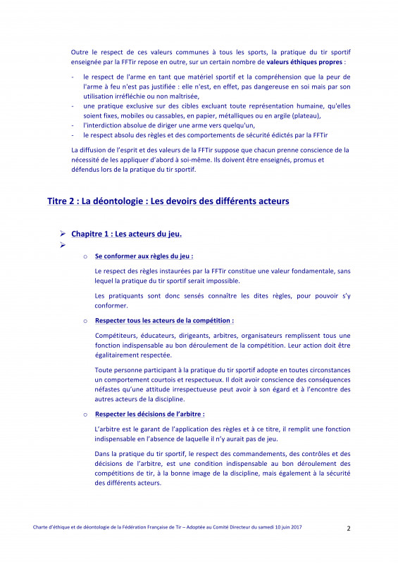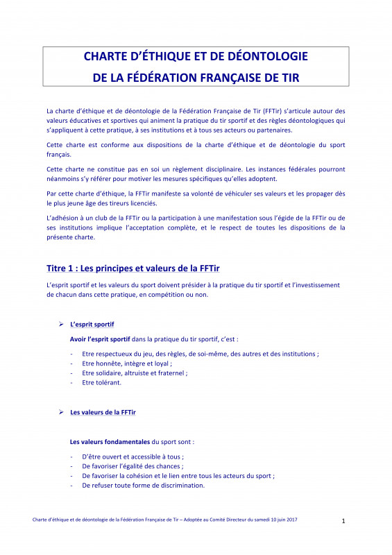 Charte d'éthique et de déontologie de la FFTir