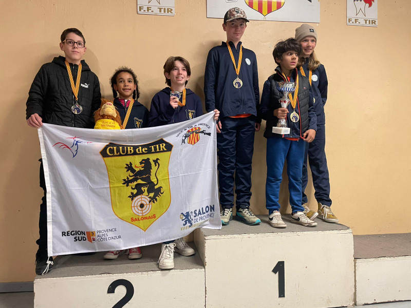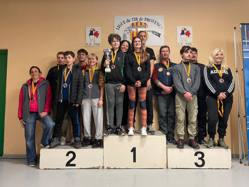 Notre école de tir avec 3 tireurs (Romane, Antoine et Léo) est championne régional des clubs devant le club de tir de Salonais.