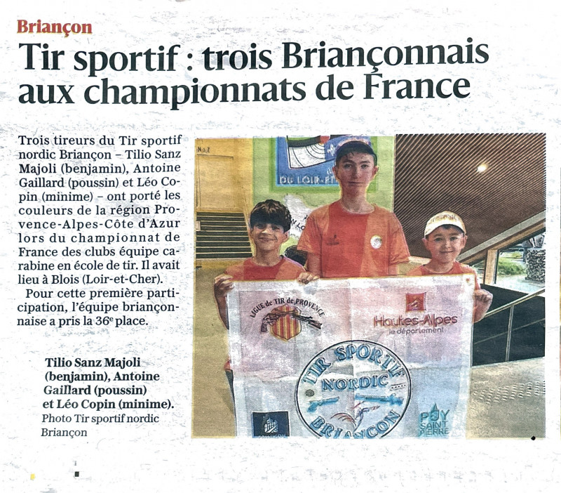 pour avoir représenté les couleurs de la région PACA lors du championnat de France des clubs pour l'équipe carabine école de tir à Blois dans le département du Loir-et-Cher.