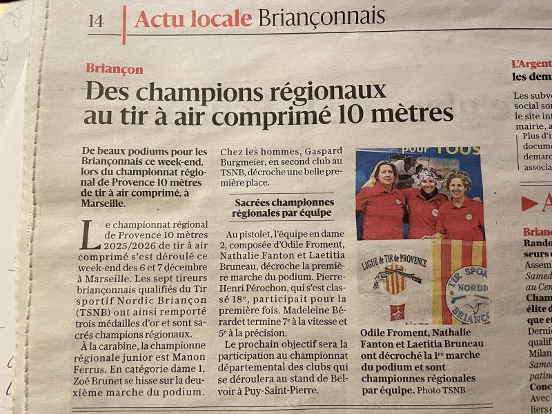 Le Championnat Régional Provence 10m s’est déroulé ce week-end à Marseille. Le Tir Sportif Nordic Briançon (TSNB) y était représenté par 7 tireurs qualifiés, qui repartent avec 3 médailles et de belles performances.