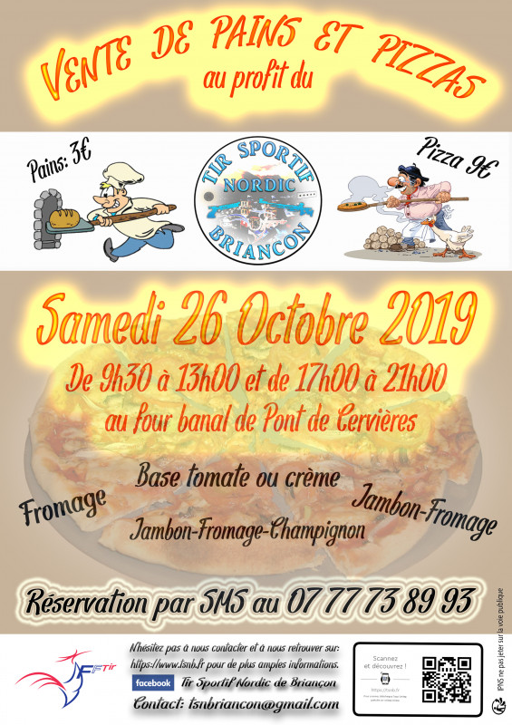 Vente de pizzas et de pains le Samedi 26 octobre 2019, à partir de 9h30 à 13h00 et le soir de 17h00 à 21h00.